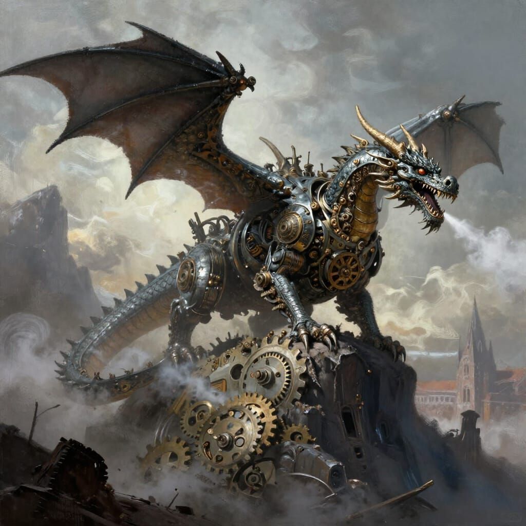 Easily generate your own mechanical dragon art with our free AI image generator. Unleash your creativity!