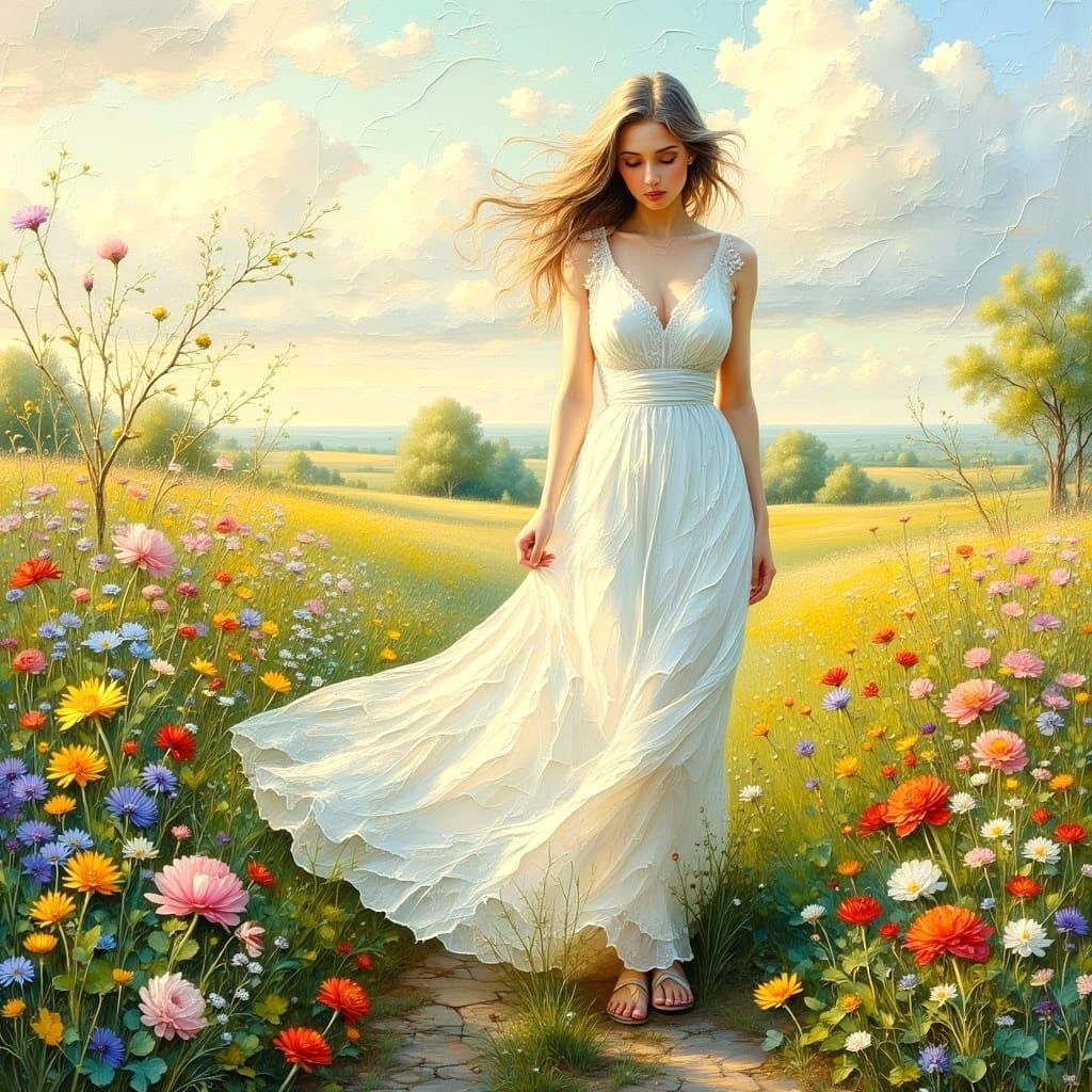 This image shows a vibrant impasto painting with textured brush strokes. The artwork evokes feelings of peace and freedom, rendered in a cozy pastel palette.