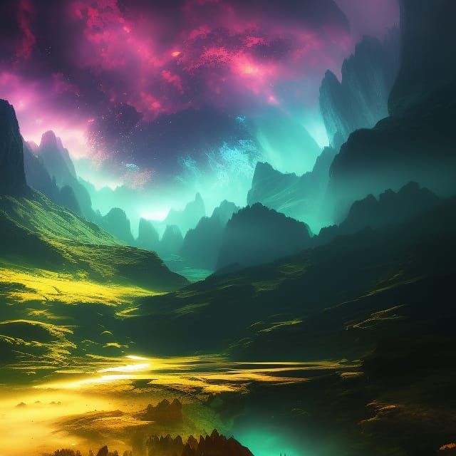 Create your own colorful valley scenes in the style of Jordan Grimmer with our free AI image generator!