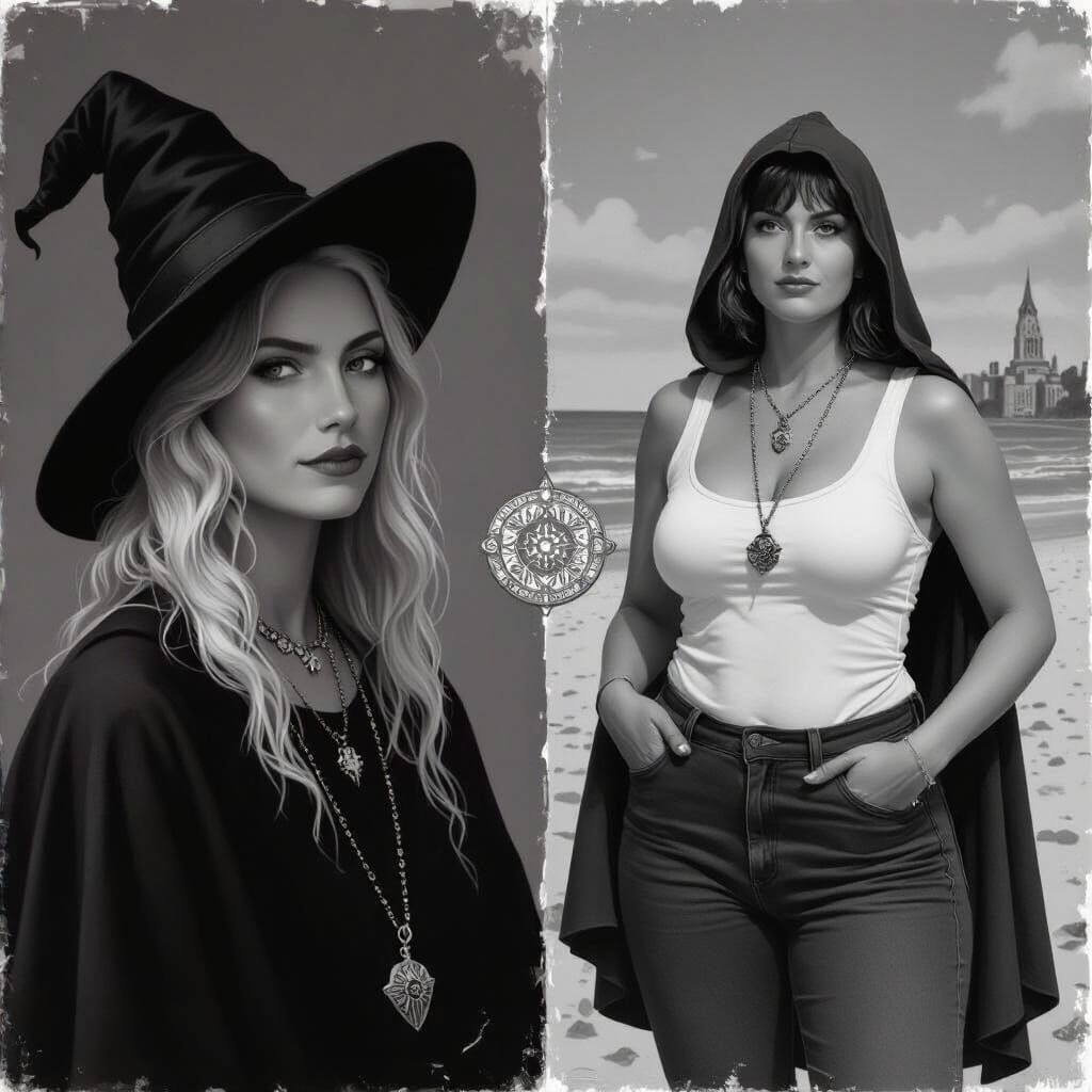 This image depicts a scene of autodidactic wizardry. A blend of styles evokes early 20th century illustration with occult themes, suggesting a complex narrative of neopaganism and mythology.