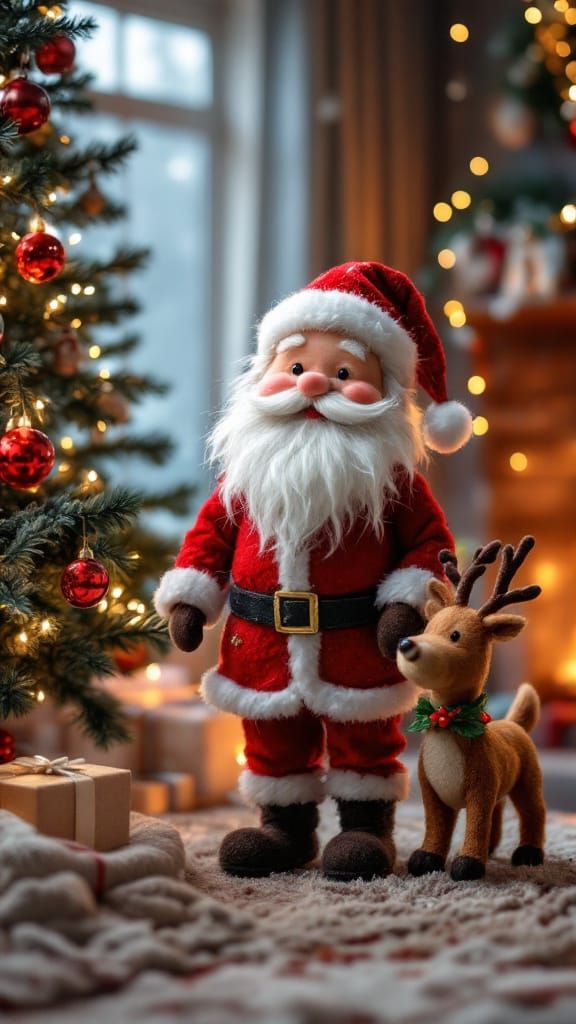 Design your own adorable felted Santa and festive scenes for free with our easy-to-use AI generator.