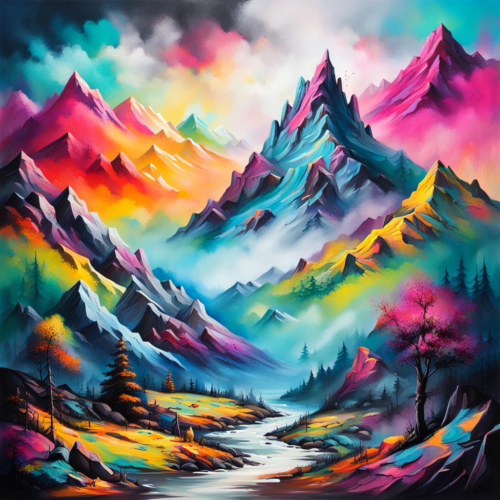 Unleash your creativity and generate your own colorful mountain landscapes with our free AI image generator.