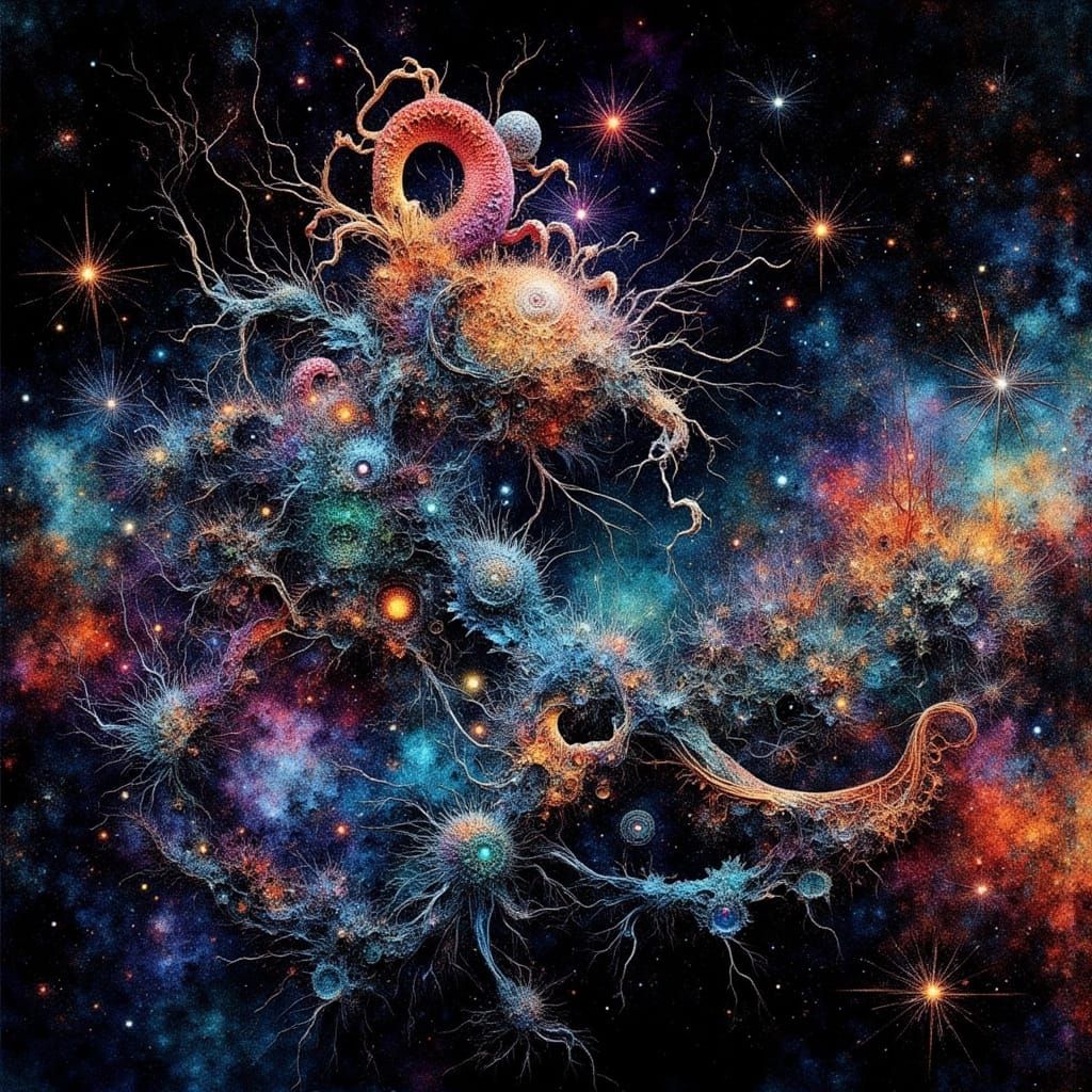 This image features pulsating fractal waveforms in a gothcore aesthetic, rendered with a refractographic effect. The artwork has a sculpted appearance with subtle signature detail.
