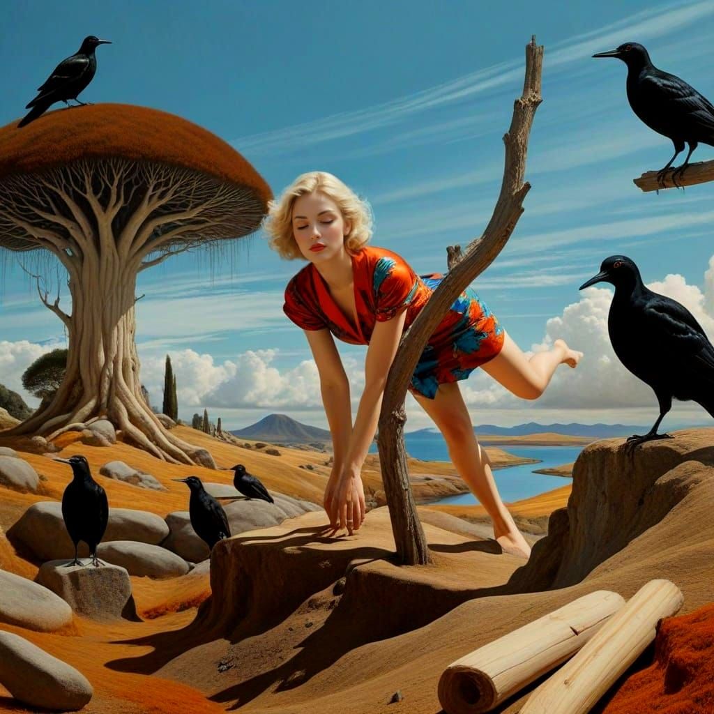 photorealistic beautiful mature ladies, perfectly rendered expressive charismatic faces, dynamic postures, by Romina Ressia, Angelina Wrona, Natalia Drepina, Yigal Ozeri, in fantastic surrealistic landscape by Paul Delvaux, Salvador Dali, Andy Kehoe, Andreas Lie, sharp focus, great depth of field, high ...