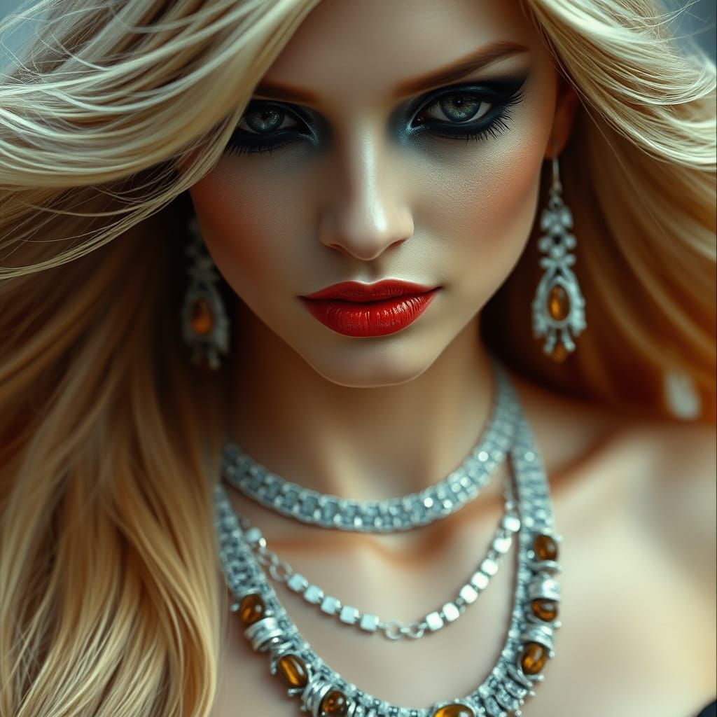 Easily design your own beautiful goddess images with our free AI image generator, featuring flowing hair, elegant makeup, and stunning jewelry