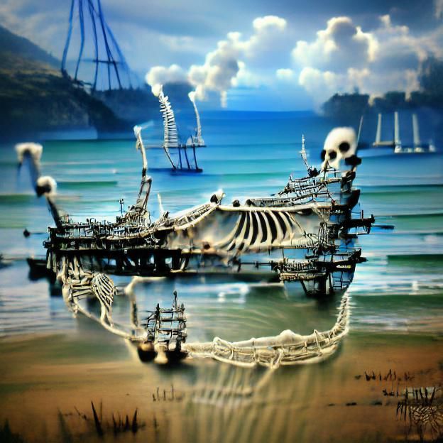 Unleash your creativity! Easily create your own eerie skeleton ship images with our free AI image generator.
