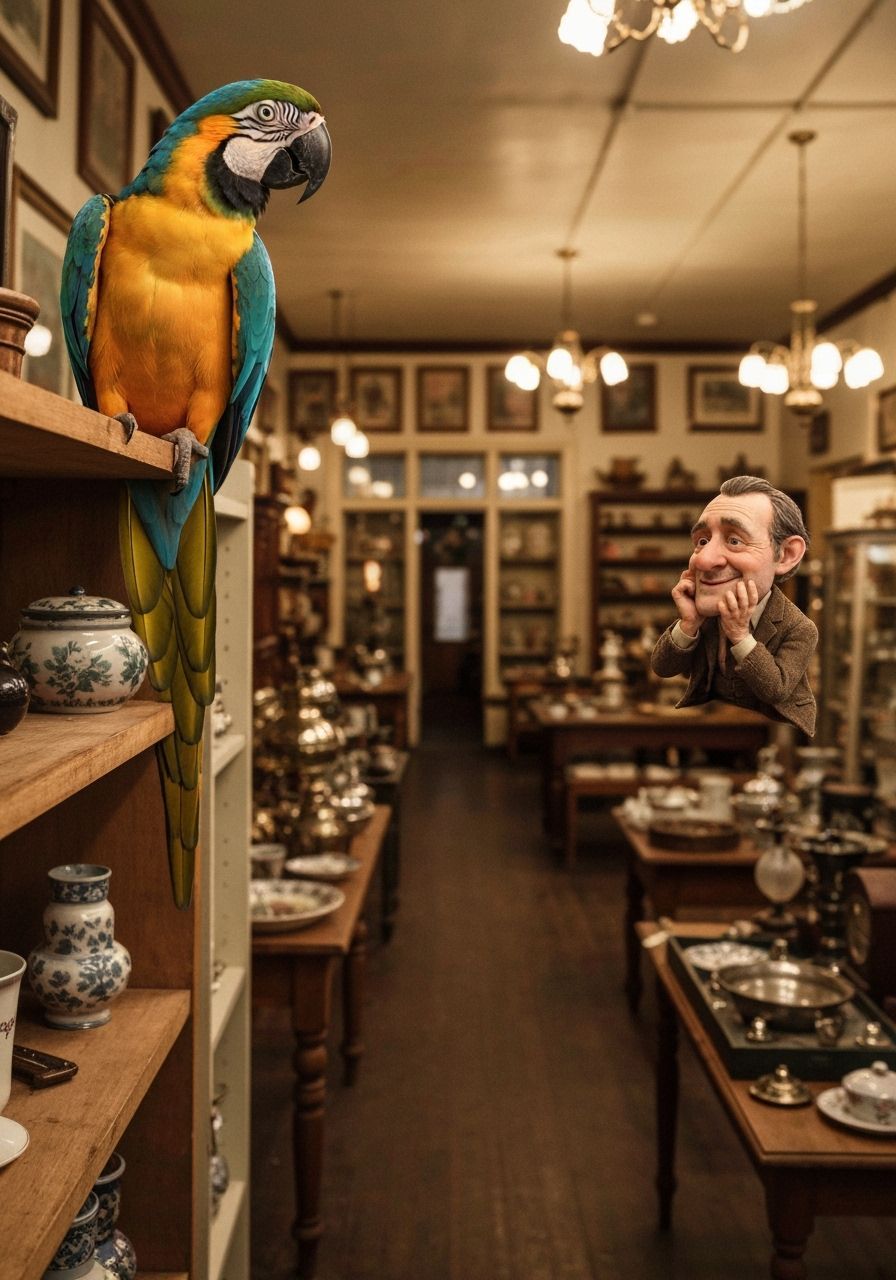 Parrot captain has a small man on his shoulder. detailed matte painting, deep color, fantastical, intricate detail, splash screen, complementary colors, fantasy concept art, 8k resolution trending on Artstation Unreal Engine 5
