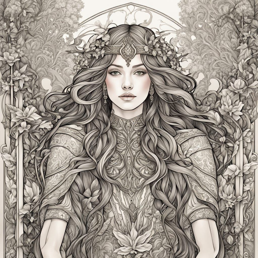 Design your own Art Nouveau warrior woman with flowing hair and ornate armor using our free AI image generator. Easy and fun!
