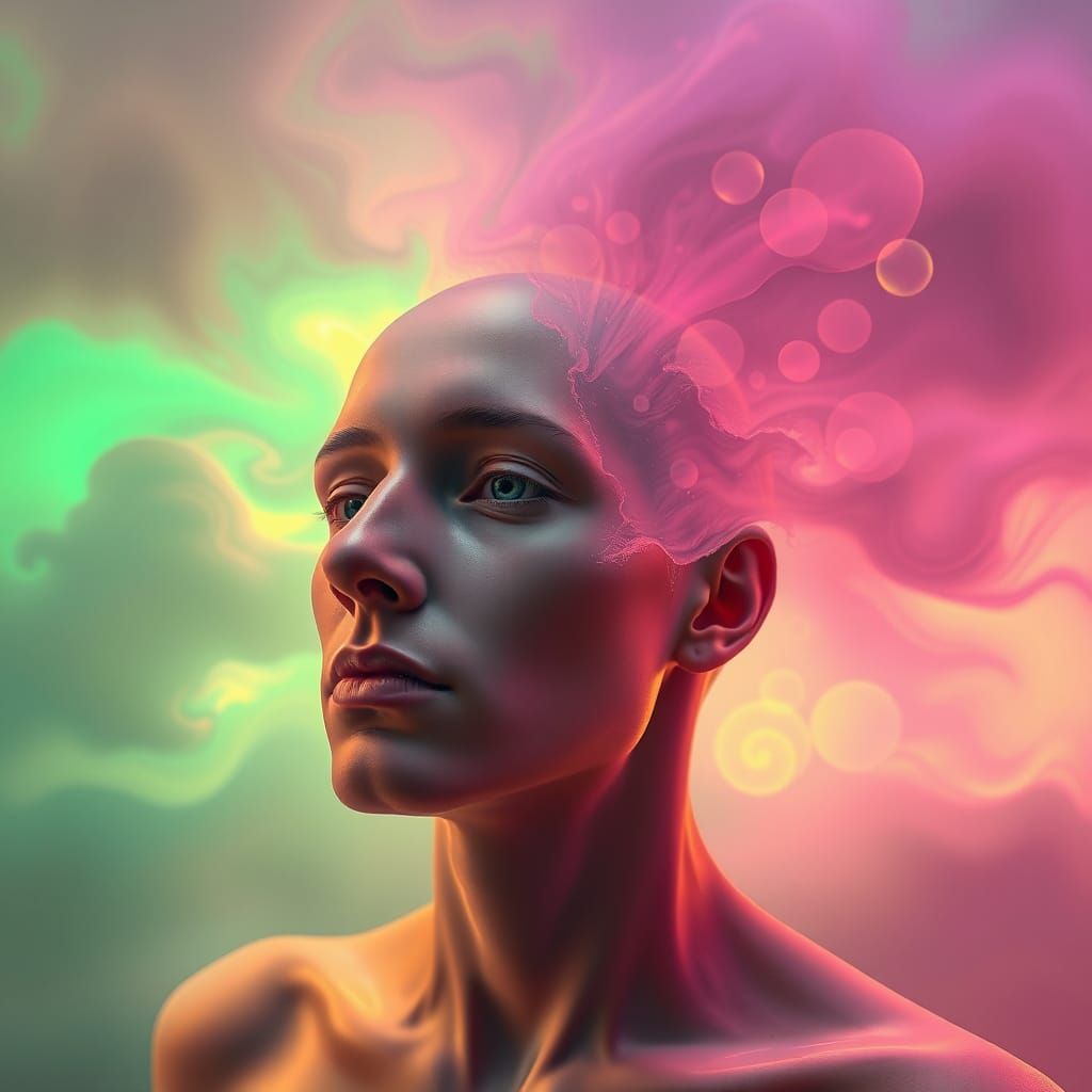 This hyperrealistic image captures a philosophical atmosphere, exploring the secret colors of existence with ultra-detailed, sublime, and surreal elements.