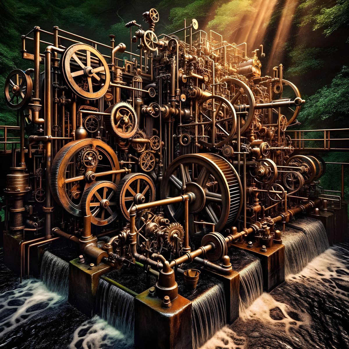 Create your own Rube Goldberg-inspired waterwheel contraptions with our easy-to-use AI image generator - no experience needed!