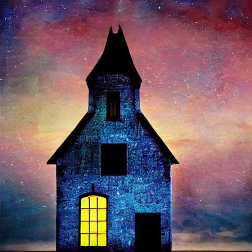 The house is threatened by archaeologists. The girl will only slow its salvation. Luminous mixed media collage gothic