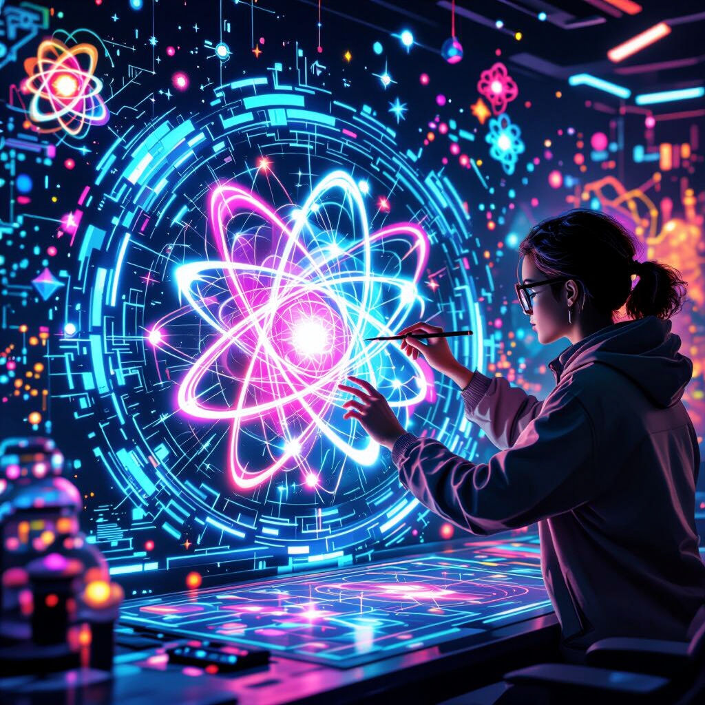 A mesmerizing collection of AI-generated images depicting atoms, molecules, and subatomic particles in stunning artistic interpretations.