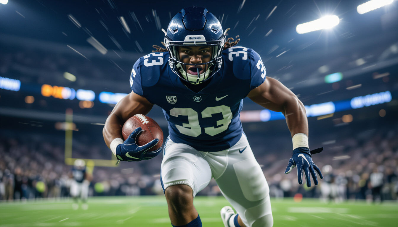 Score big with stunning AI-generated college football wallpapers. Perfect for fans, these dynamic designs capture the spirit of the game. Create your own unique college football wallpaper today!