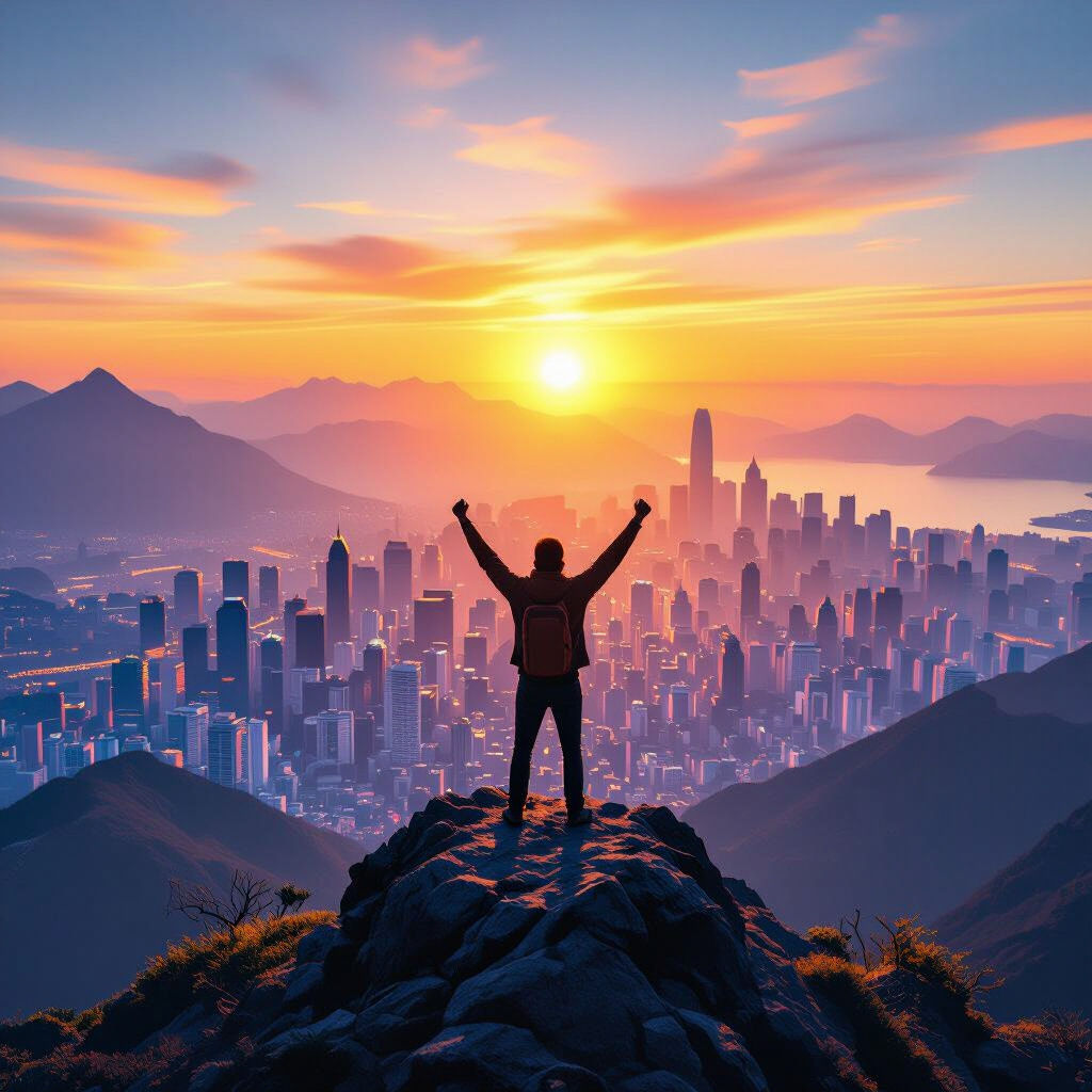 To visualize your personal definition of success, start by crafting a detailed prompt. Describe the specific elements, feelings, and achievements that represent success for you. For example, you could prompt for 'a person celebrating reaching the summit of a mountain after a long climb, with a sense of accomplishment and a clear sky' to visualize career ascent, or 'a serene home filled with books and plants, bathed in warm sunlight' for personal peace and growth.