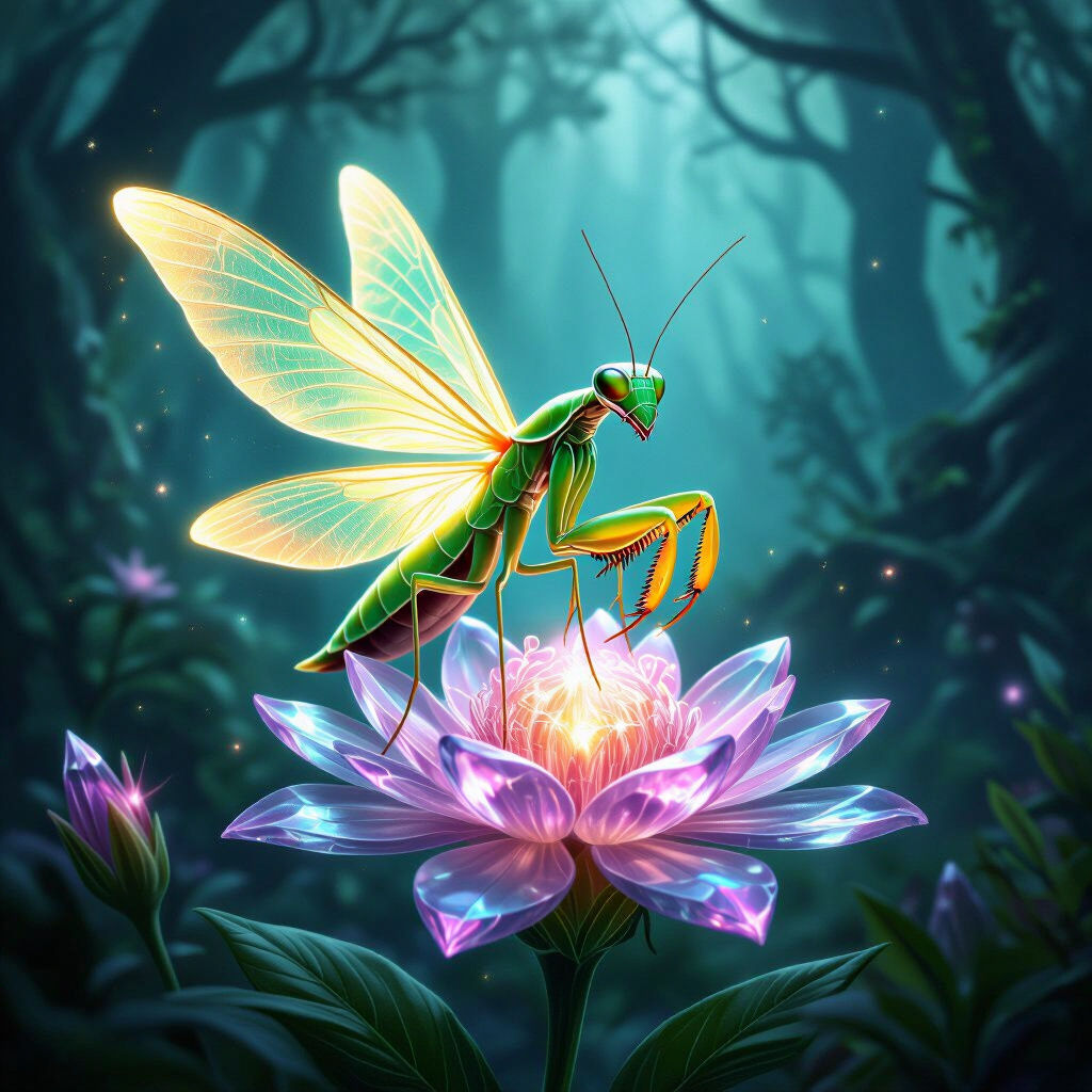 Explore a captivating gallery of AI-generated praying mantis images. Discover unique artistic interpretations and then create your own stunning insect art with NightCafe.