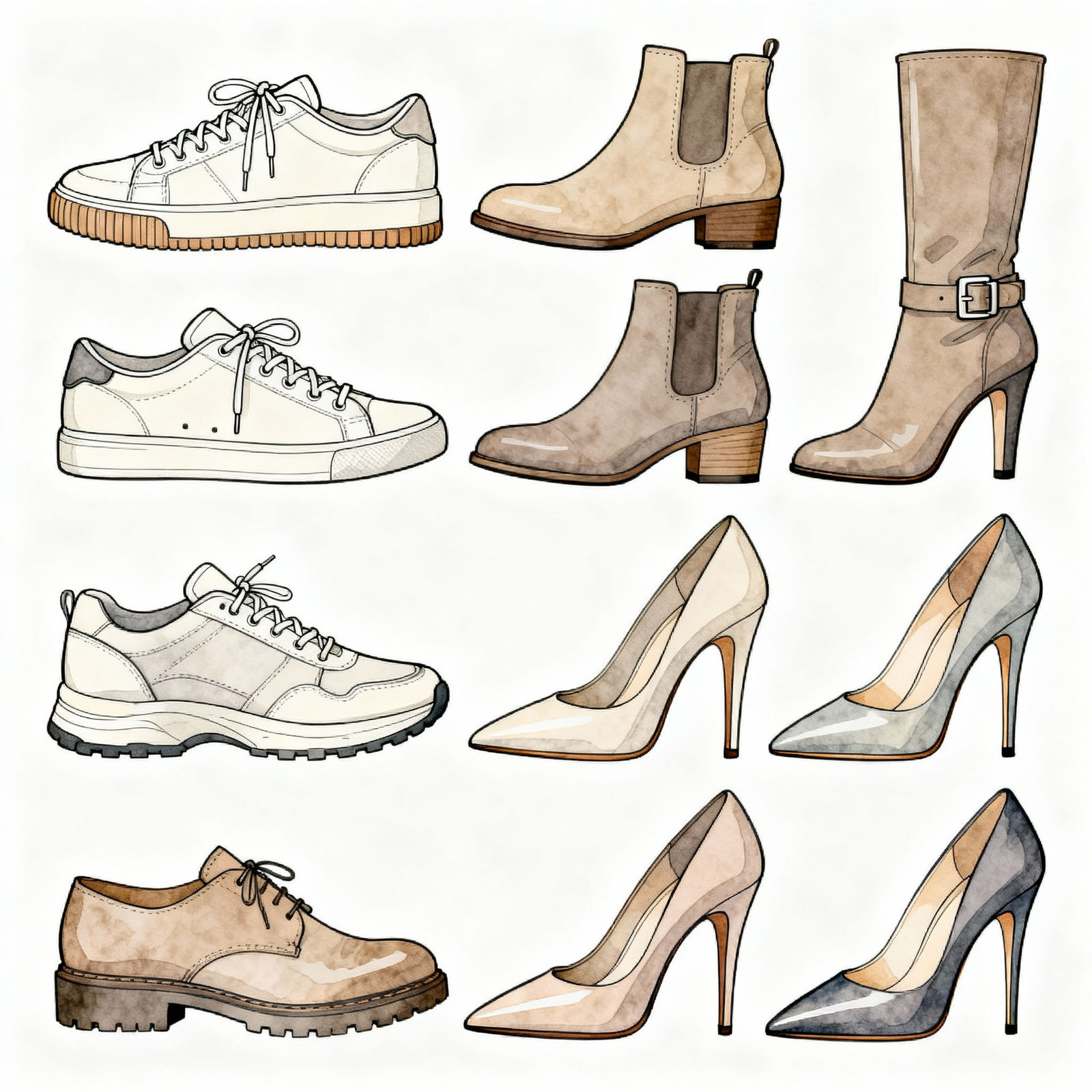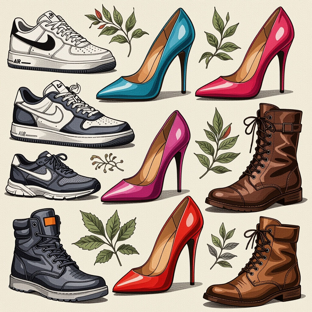 Explore a diverse gallery of AI-generated shoe designs, perfect for drawing reference. Find inspiration for sneakers, boots, heels, and more to elevate your artistic creations.