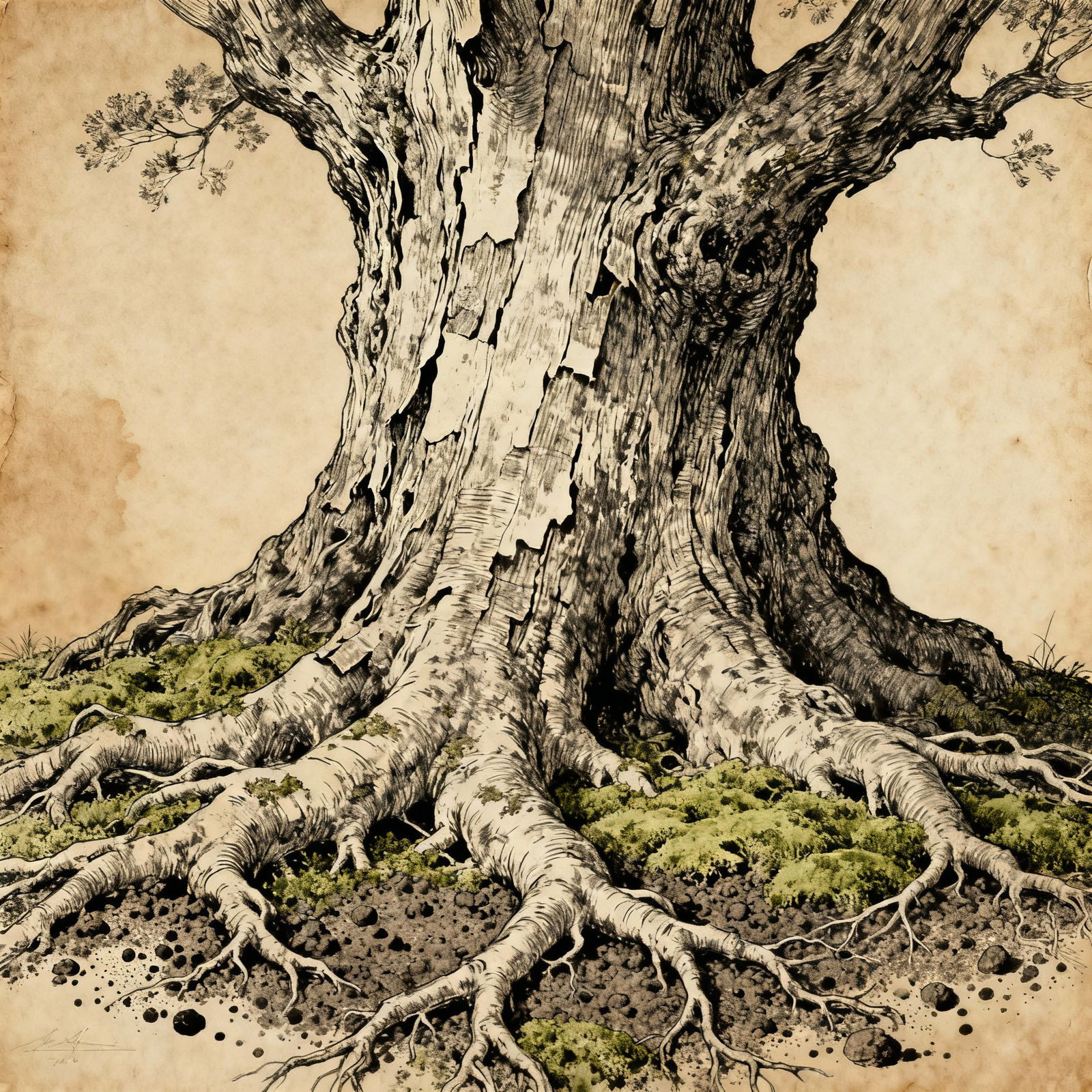 A curated collection of AI-generated drawings featuring trees with striking and symbolic root systems. Explore diverse artistic interpretations of nature's foundation.