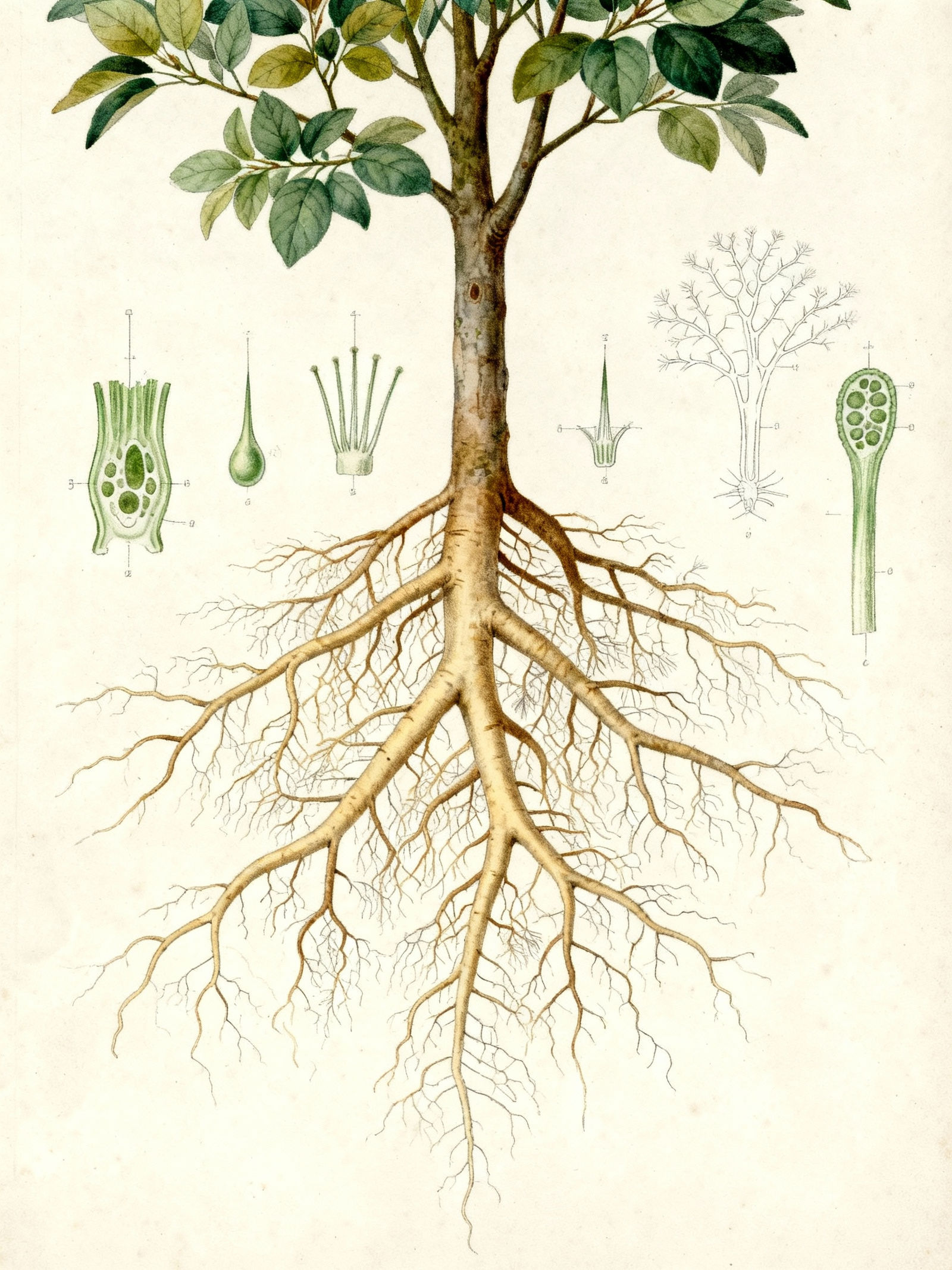 These AI generated drawings offer a unique perspective by visualizing the complex and often unseen beauty of root systems with remarkable detail and creativity. The AI can interpret prompts in novel ways, leading to organic textures, intricate patterns, and symbolic representations that might be challenging to achieve through traditional methods alone. They provide a fresh source of inspiration rooted in both nature and technology.