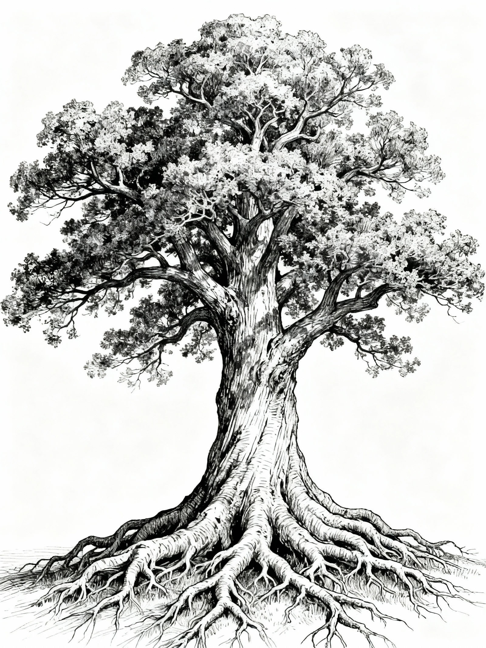 Discover intricate Tree With Roots Drawings created by AI. Perfect for artists and nature lovers seeking unique inspiration. Visualize and create your own root-themed artwork.